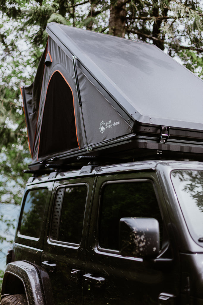 The Cougar is our 50″ wide aluminium hard shell roof top tent that are less than 7″ tall when closed.