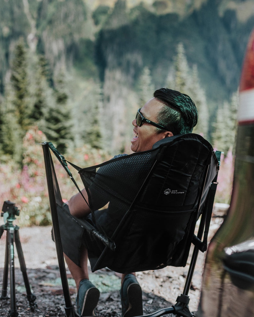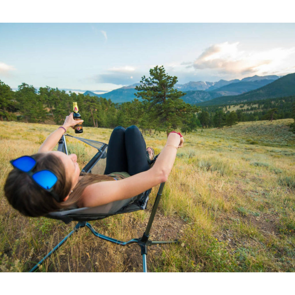 The aircraft-grade aluminum is designed to flex while you swing, dynamically suspending you in the air for an entirely new sitting experience. The deep lounge position is hard to beat. And Milky Way Recliner Camp Chair has all the little comforts you love, including an adjustable headrest, with a stash pocket to keep your little things close at hand.