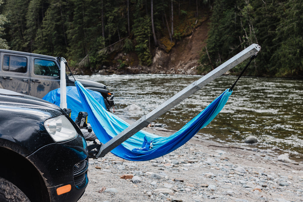 Hammock Hitch Mount lets you deploy a hammock stand from your trailer hitch in seconds. No more searching for trees- hammock relaxation is at your fingertips!